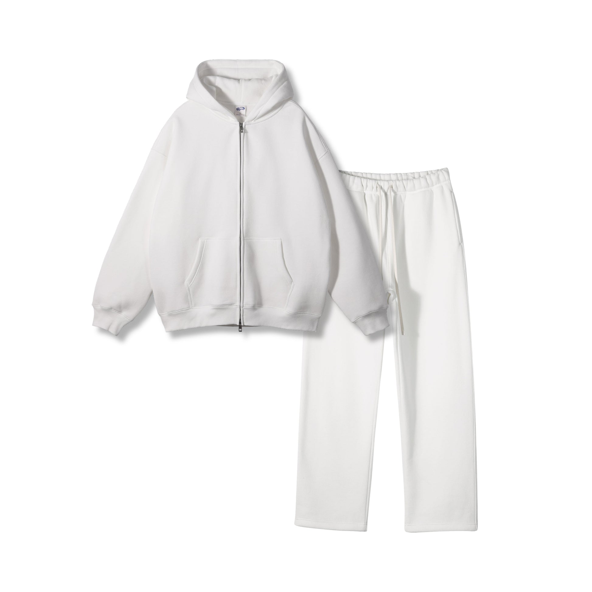 UNLOCK YOUR DRIP. Built from heavyweight cotton (300gsm) that keeps its shape but feels soft on the inside, this full zip tracksuit is all about comfort with edge. The hoodie gives you a clean front zip and boxy fit, while the pants bring a flared, stacked cut with paint-splatter panels. Together, it’s bold streetwear you can wear all day, in or out. The model is 176 cm tall and wearing size M.