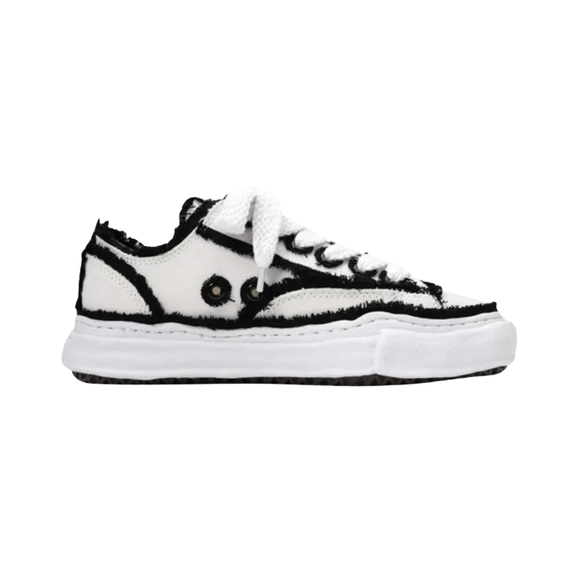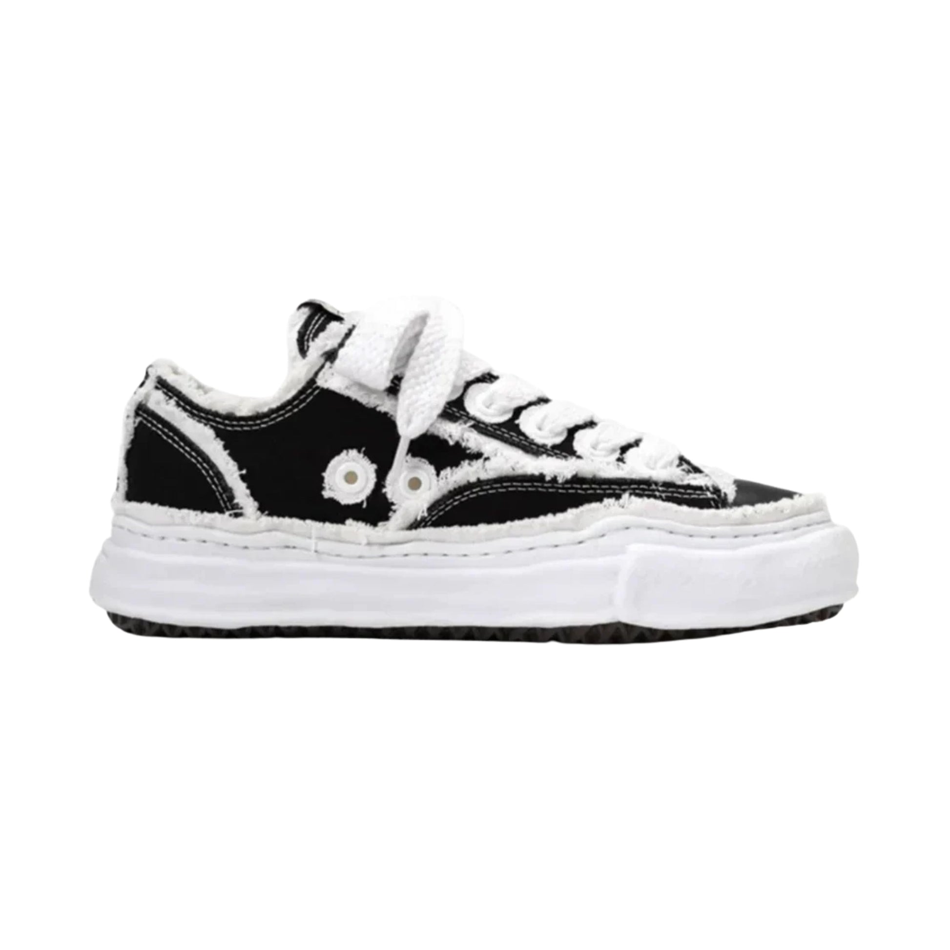 UNLOCK YOUR DRIP. The Sutora Sneaker is made with canvas and has unfinished edges that give it a rough, worn look. It has a thick white sole that keeps your feet comfortable and steady. The frayed parts and stitching make it stand out in a simple way.