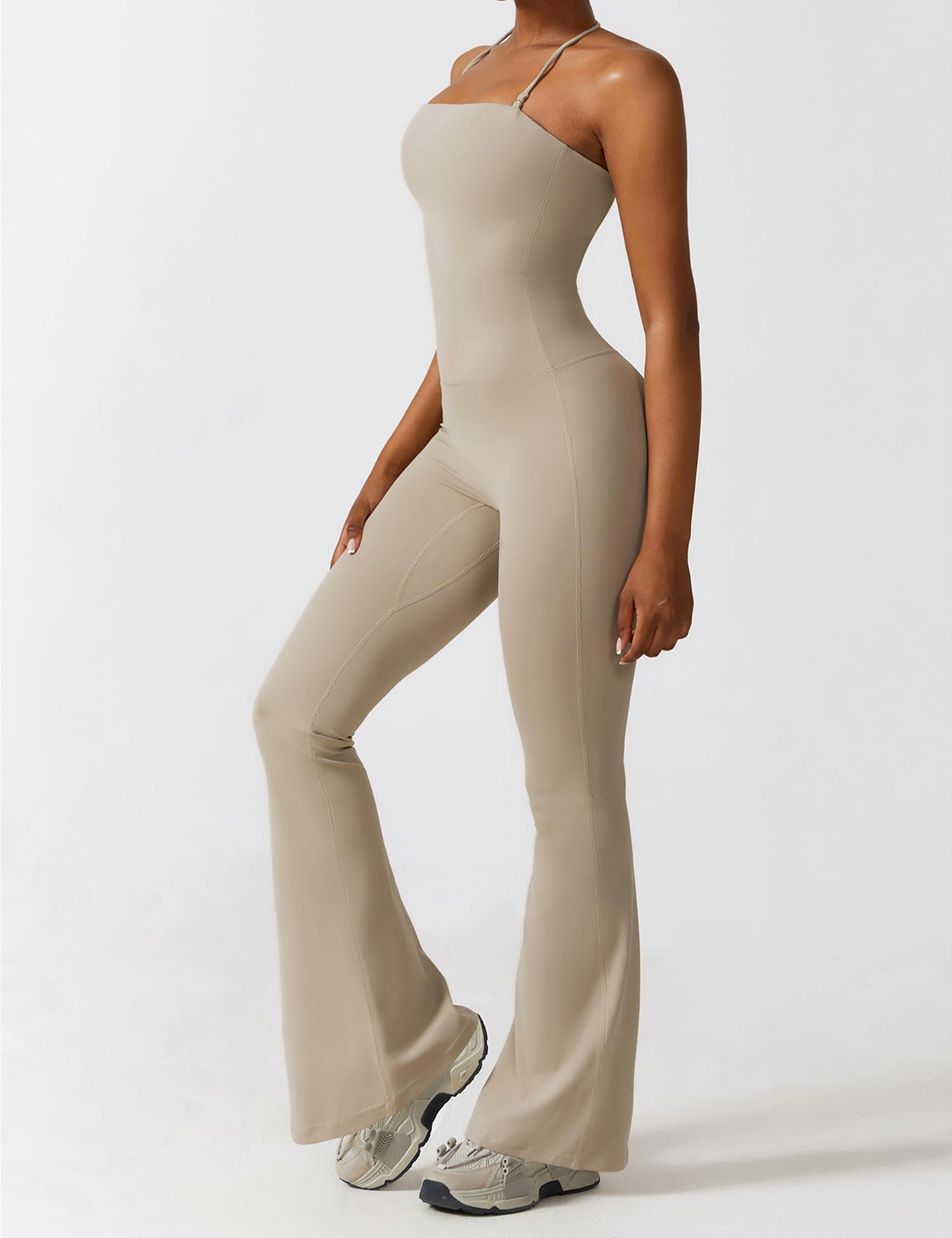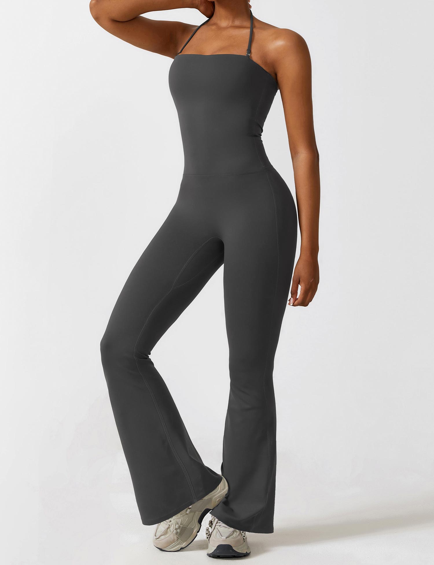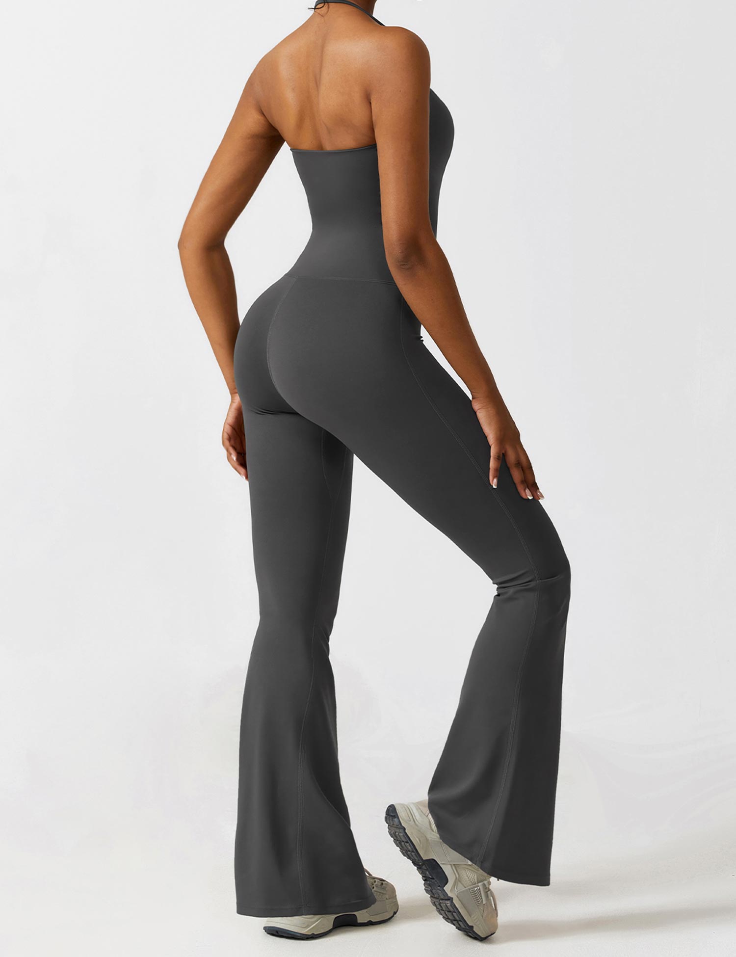 The magic Halter Flared Jumpsuit features two different styles, allowing you to easily transform it from a jumpsuit to fold-over leggings by folding the top section.