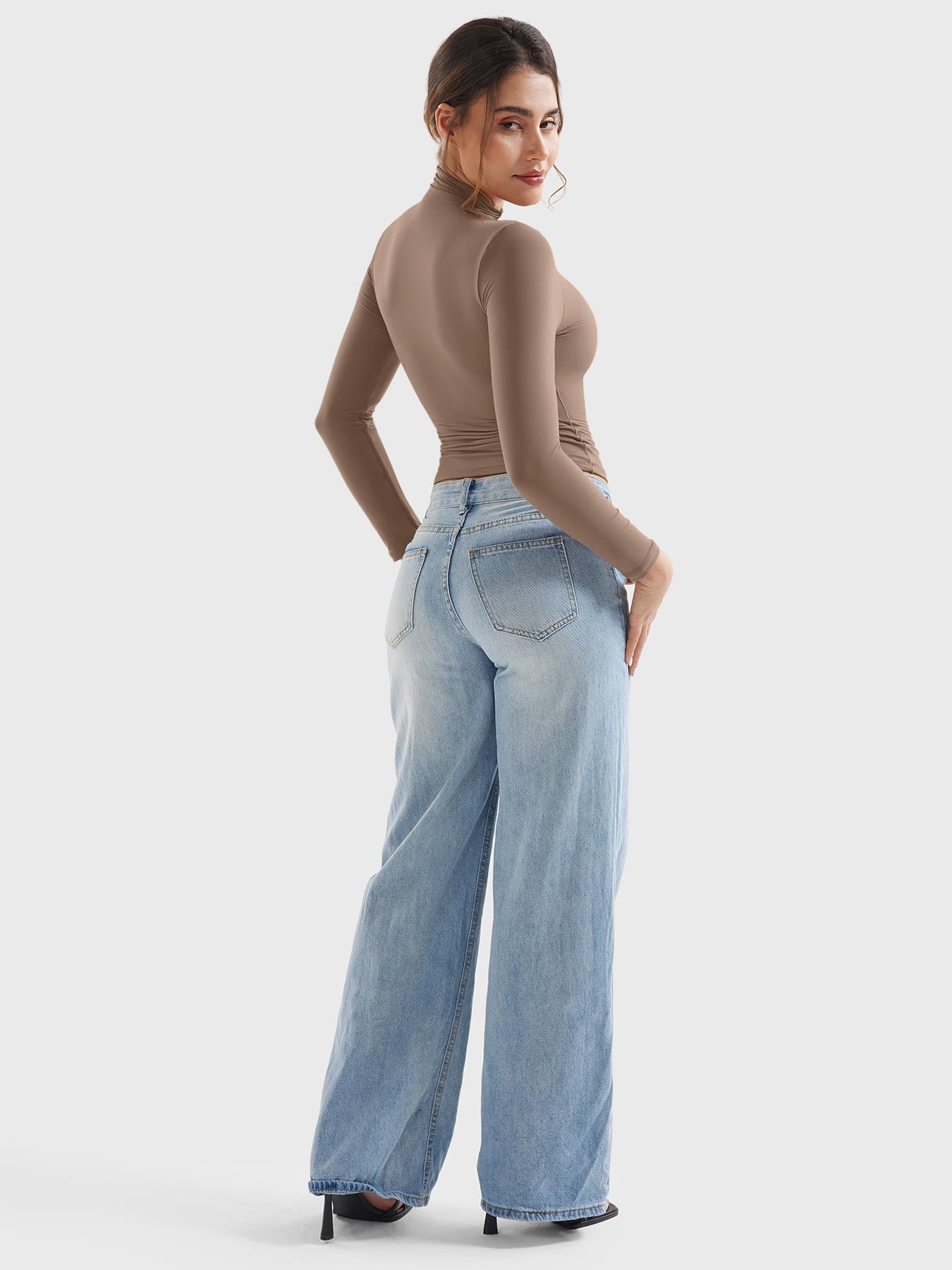 The Sariah Long Sleeve Top features lightweight, double-layered fabric for all-day comfort and warmth. Its turtleneck design and fitted silhouette make it stylish for autumn and winter. Versatile and simple, it's perfect for everyday wear or as an undershirt.