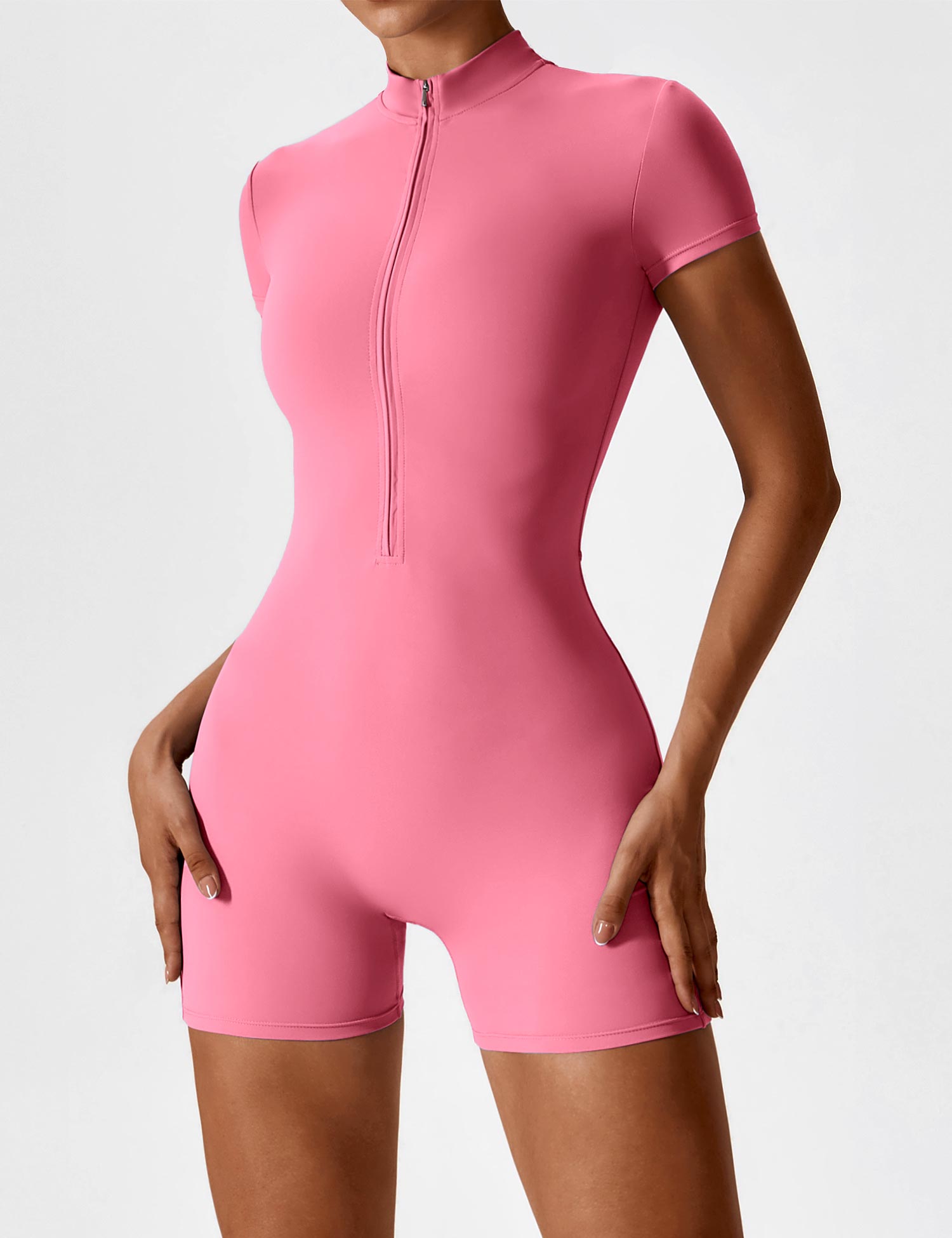 Our Short Sleeve Zipper Romper is designed for summer activities, featuring a trendy half-zipper stand collar for easy wear. Its cinched waist defines your silhouette, making it ideal for casual outings, sports, or workouts. Stay comfortable, confident, and stylish in this versatile romper!