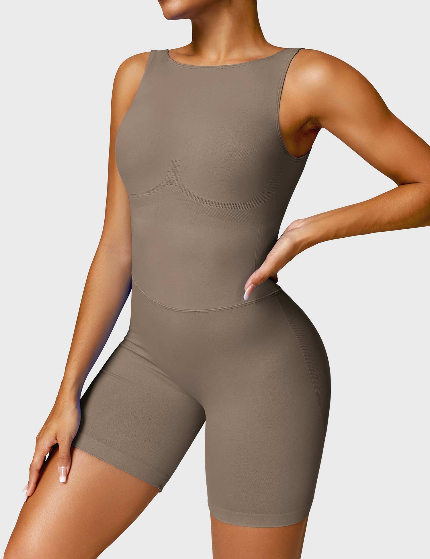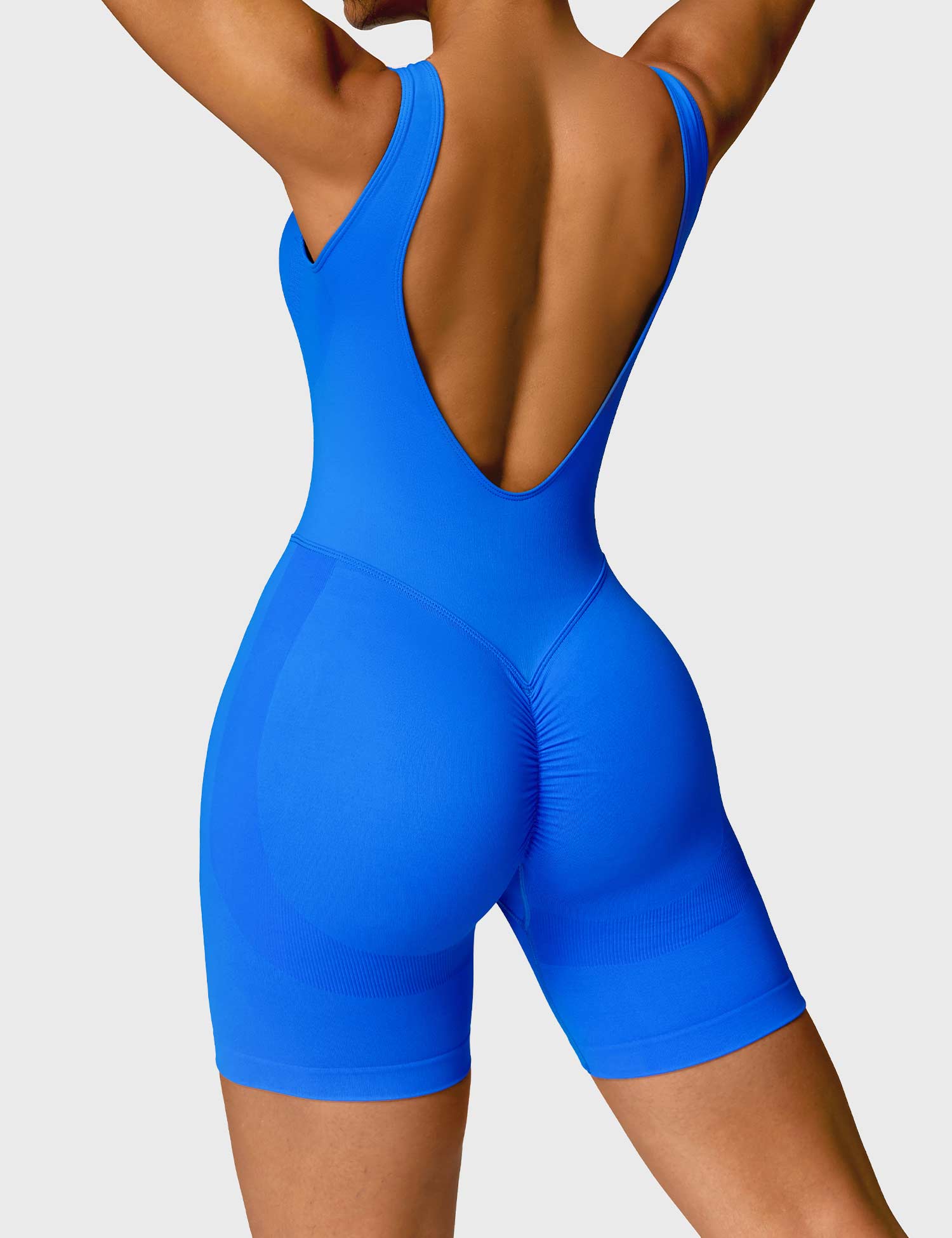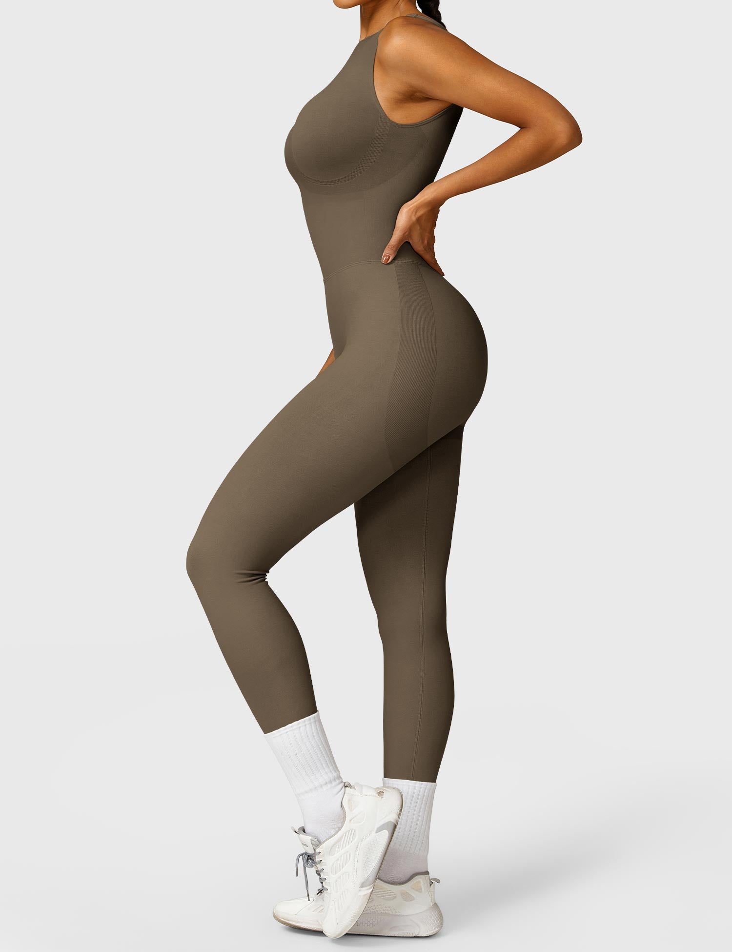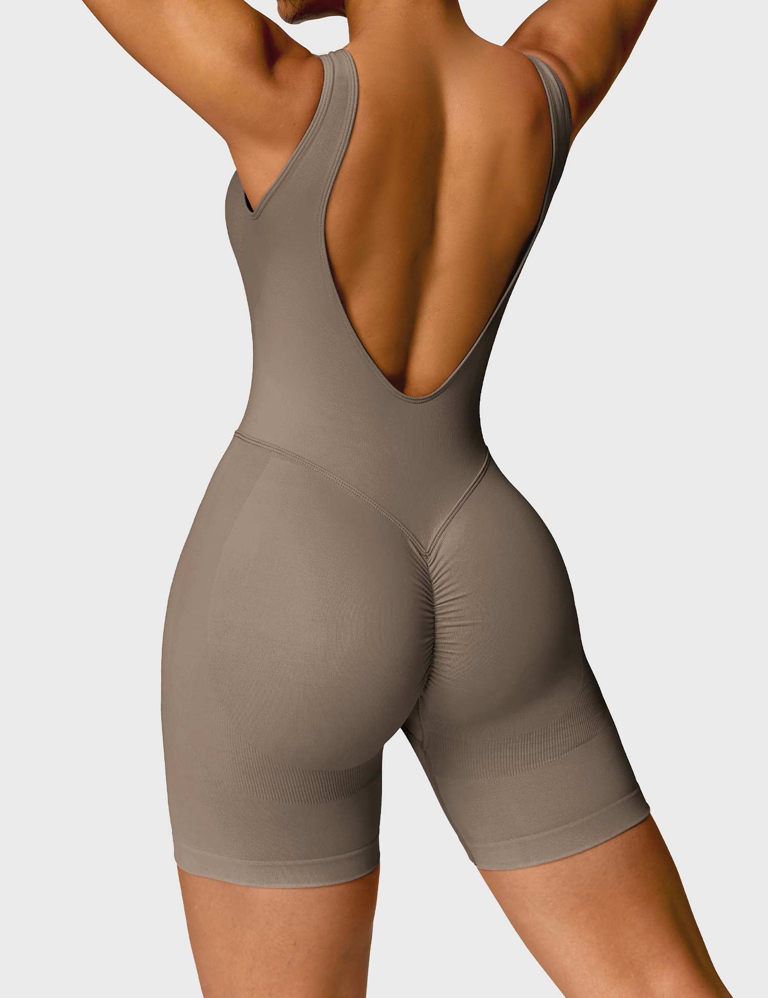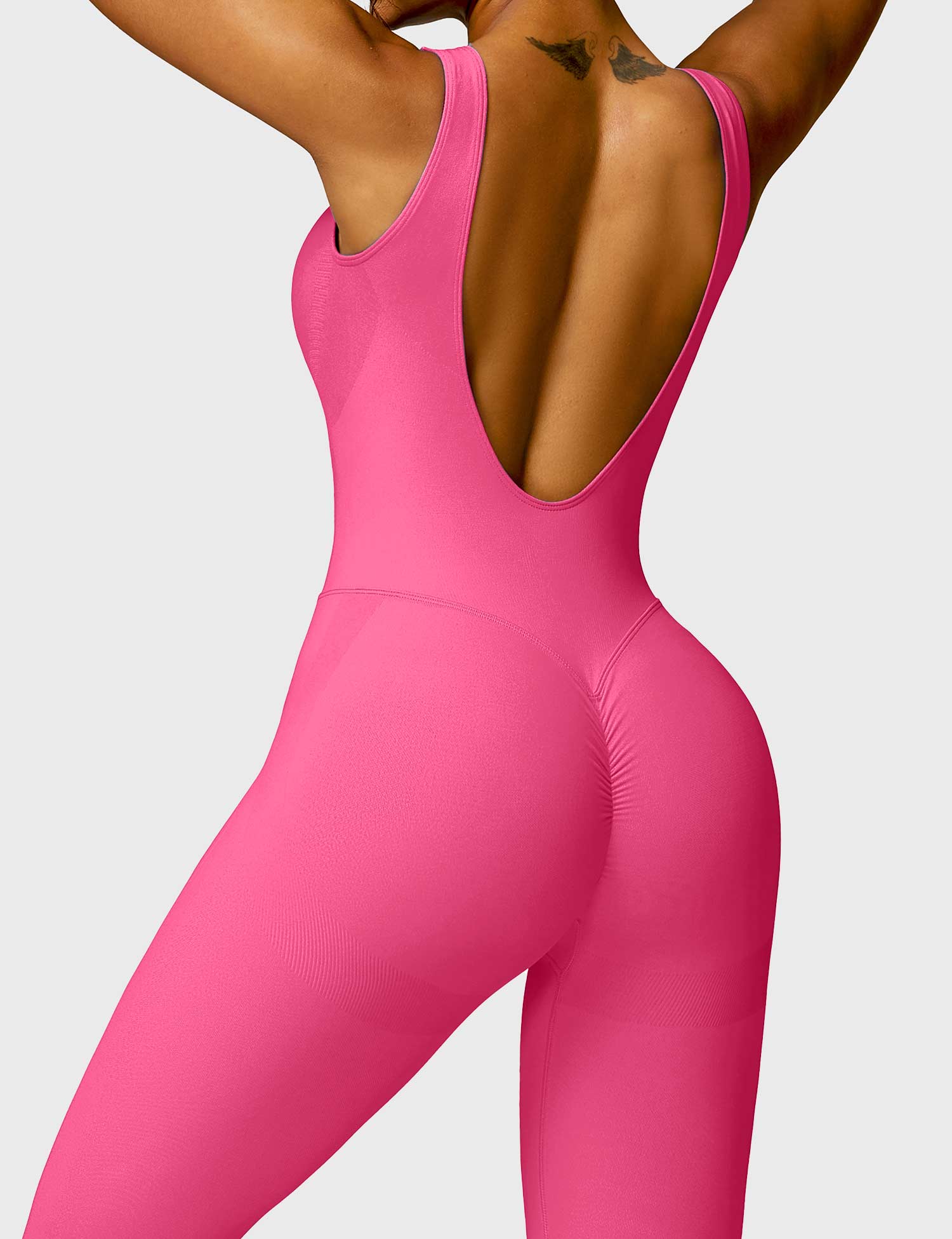 This Swanky Jumpsuit features ruched detailing to enhance your curves. Crafted from high-stretch, smooth fabric, it offers medium to high compression with a stylish high neckline and low back. Stand out in this flattering jumpsuit!