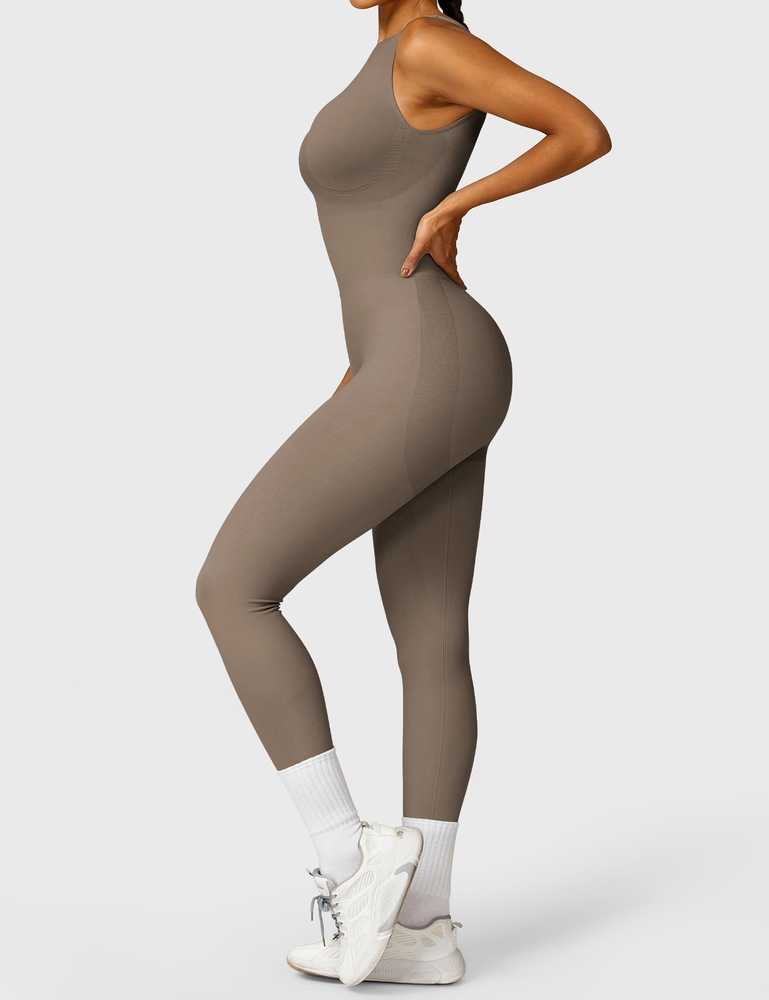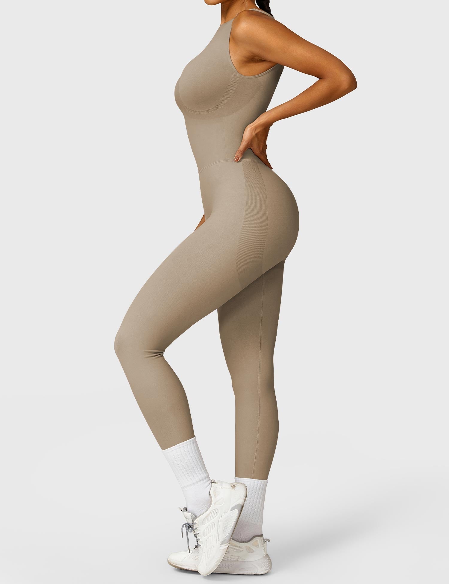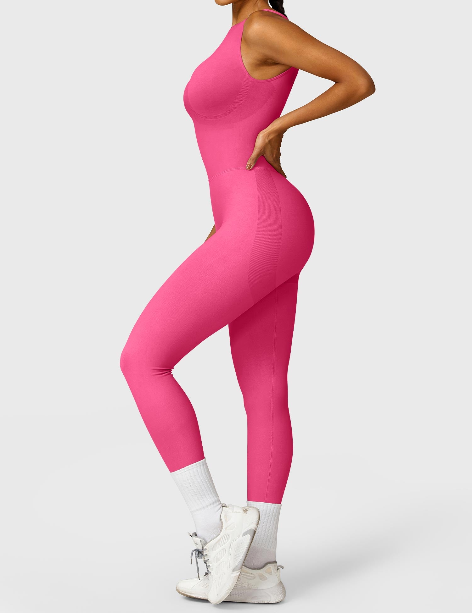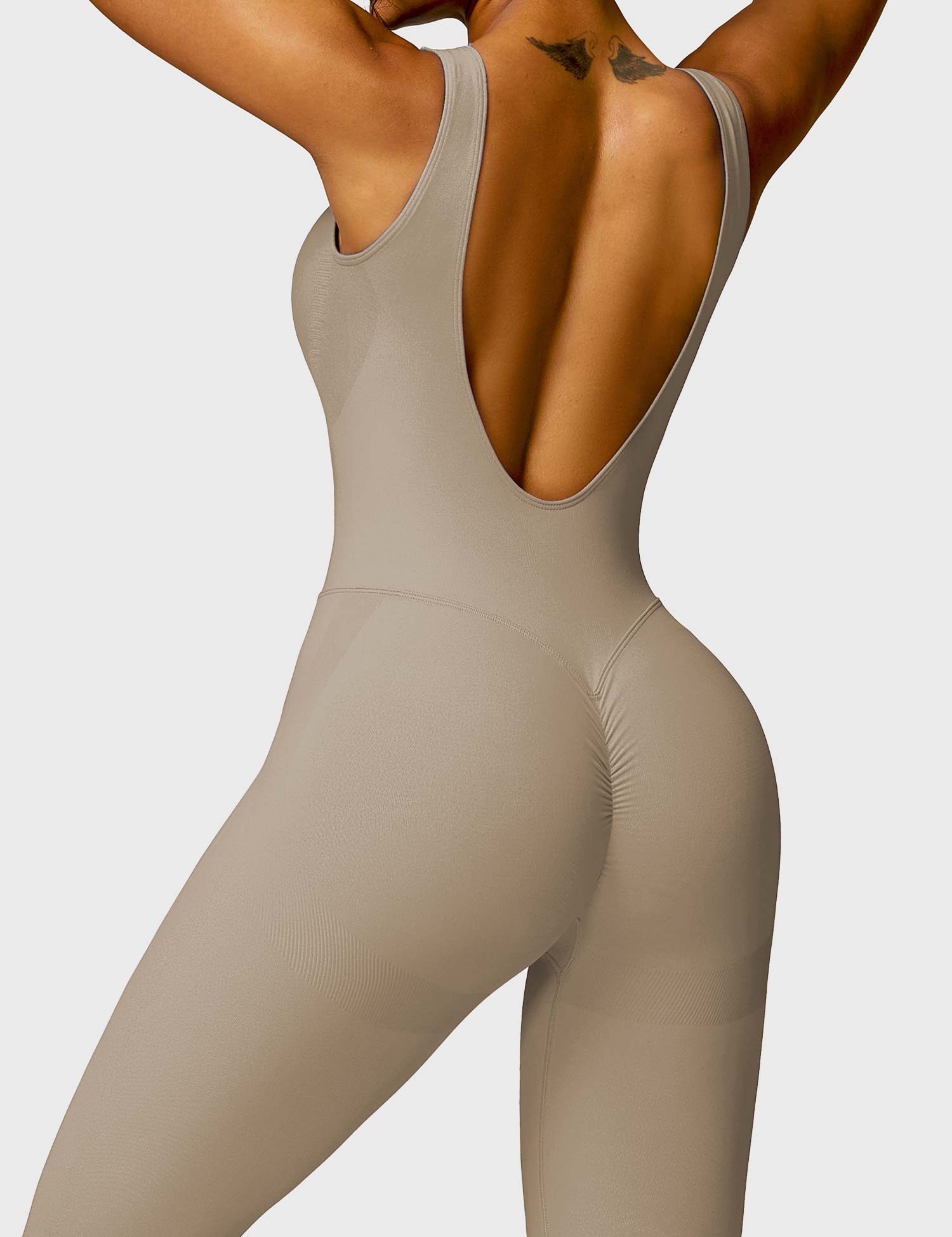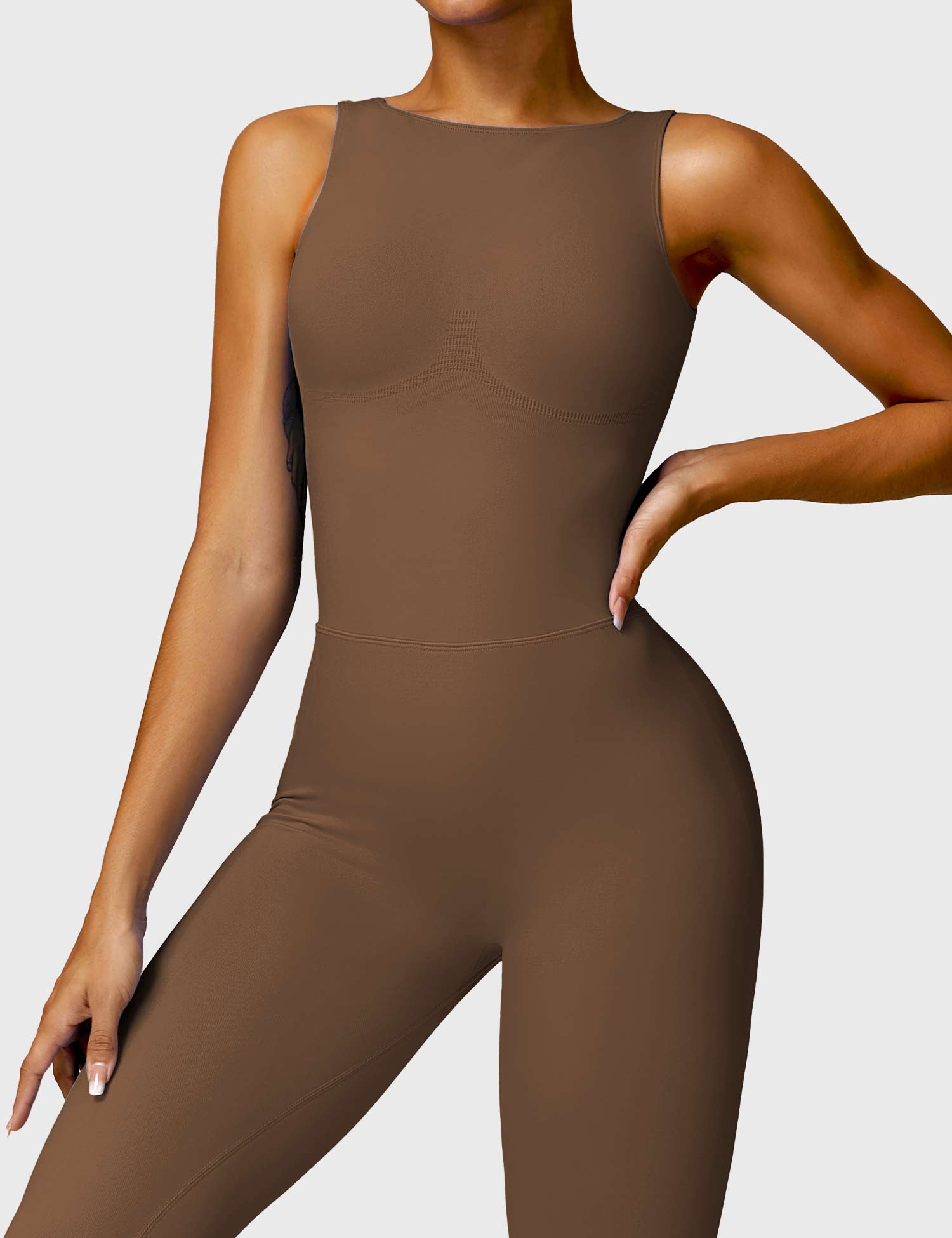 This Swanky Jumpsuit features ruched detailing to enhance your curves. Crafted from high-stretch, smooth fabric, it offers medium to high compression with a stylish high neckline and low back. Stand out in this flattering jumpsuit!